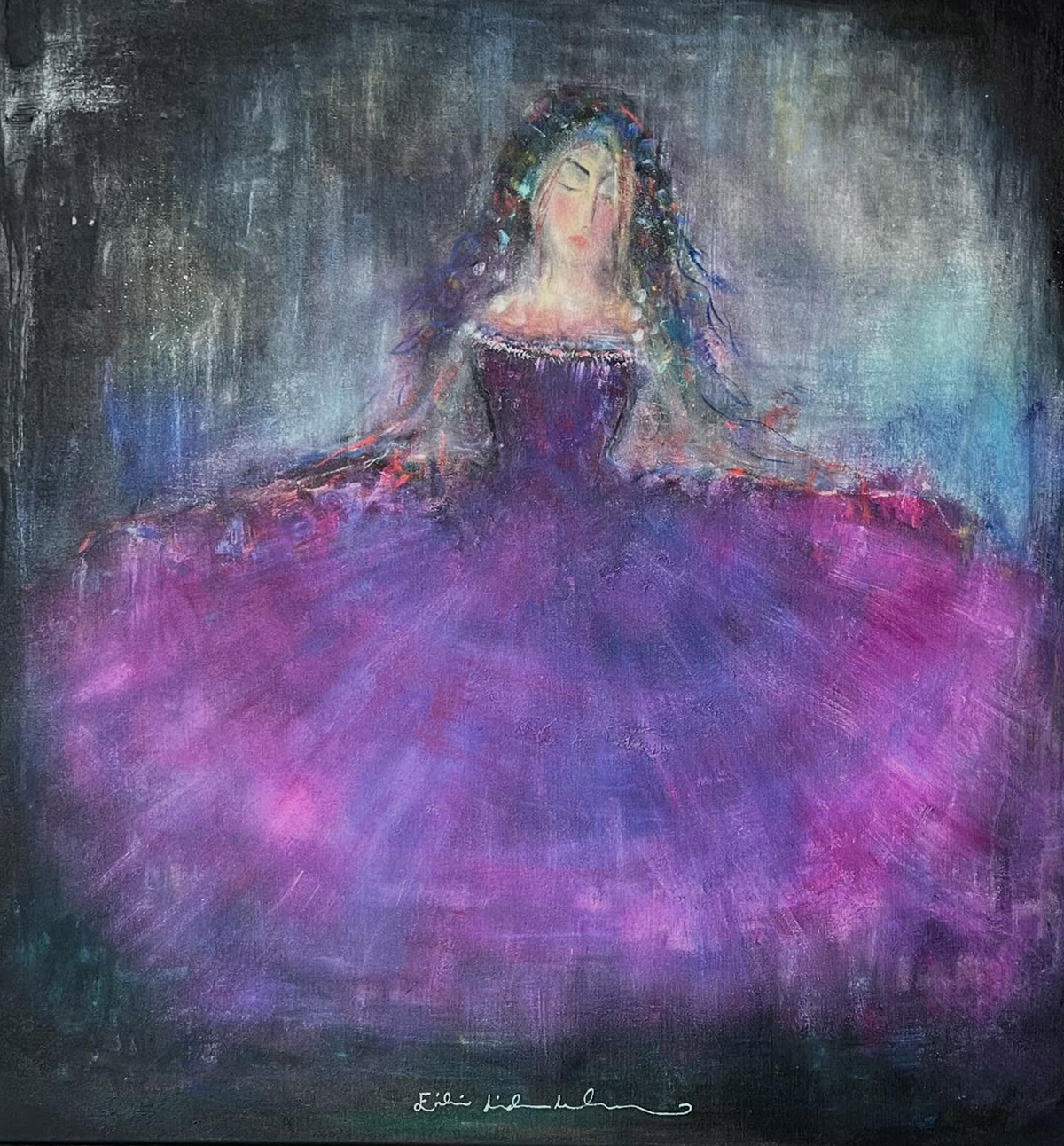 I ateljén kretsade våren mycket kring lekfullhet, något som smittat av sig på hösten med. Då mina händer krånglar och jag har mycket värk så har jag börjat våga måla även med höger hand och släppt in ritkol i mitt måleri igen. Mycket mossgröna och violetta färger har fått bölja fram över duken. Som alltid arbetar jag kring kvinnliga gestalter i olika landskap.
